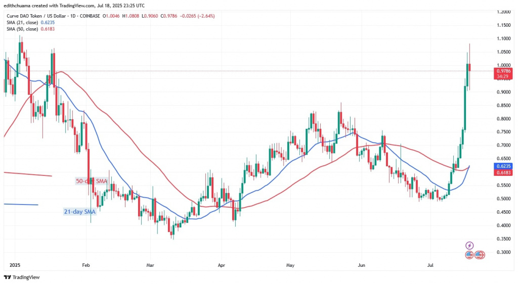 The altcoin will rise above its high of $1.33. CRV is the best performing cryptocurrency.