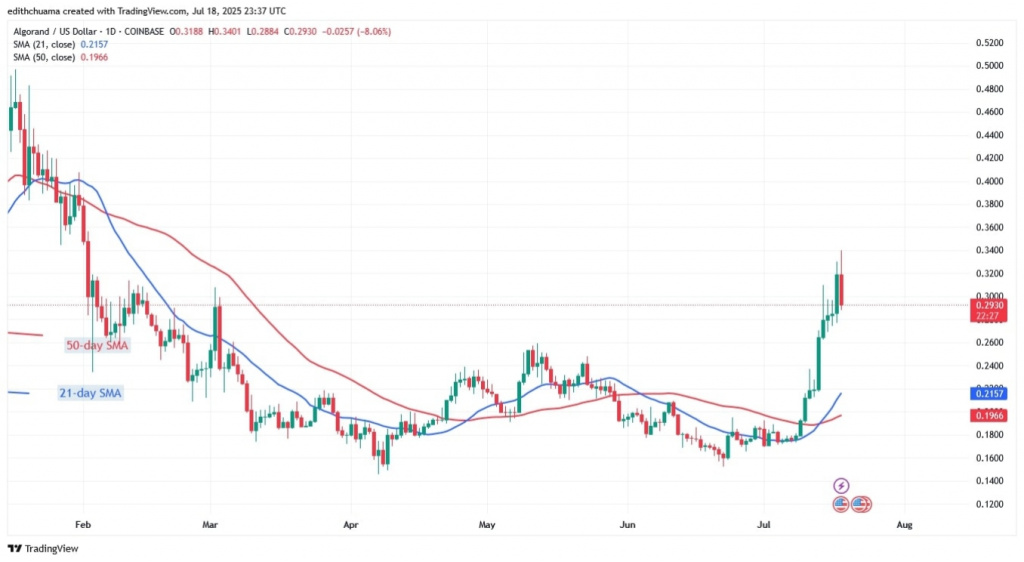 Algorand (ALGO) has recovered from the low of its chart and is rising again. After breaking above the moving average lines, the altcoin reached a high of $0.34 before retreating. On the way to its recent high of $0.61, the altcoin is making progress. Sellers at higher price levels are hindering the upside momentum. The long candle wicks are signalling the presence of sellers.